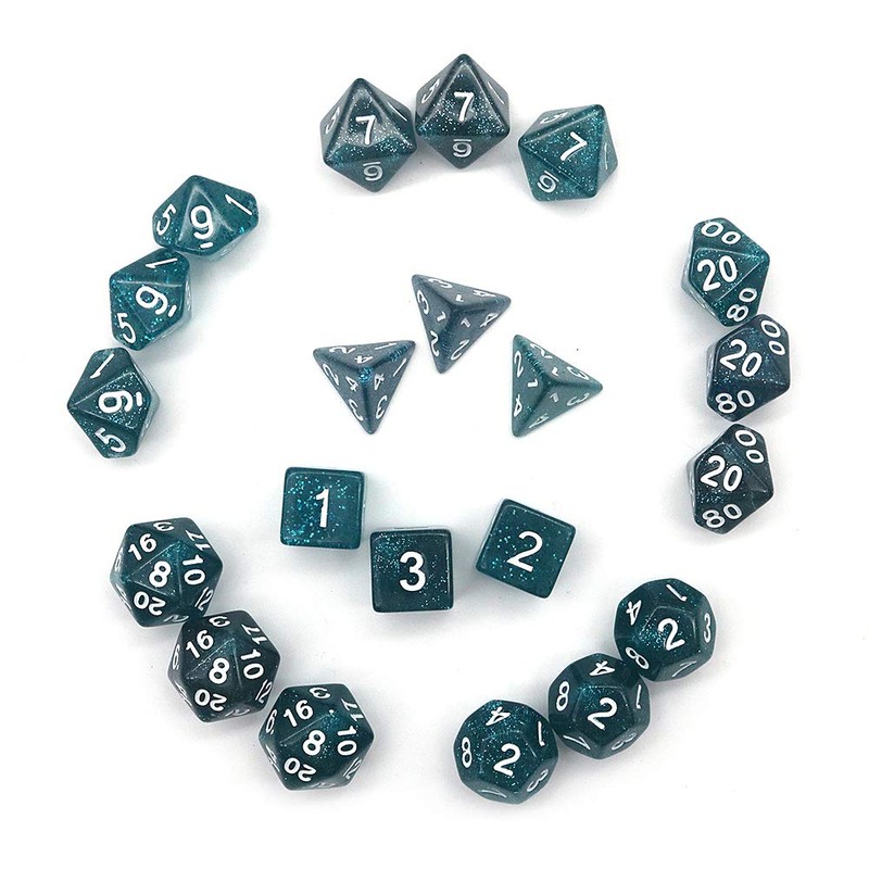 - 21 pieces: 3 sets polyhedral dice, 7 pieces for one set, total 21 pieces. D20, D12, D10, D8, D6, D4