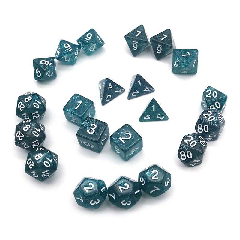 - Glitter Tip Design Each cube has glitter tip and itself color, making it more beautiful and colorful than other cubes. 1 bright color combination for 3 sets of polyhedral 7 die dice. Clear words make the cubes easy to read.