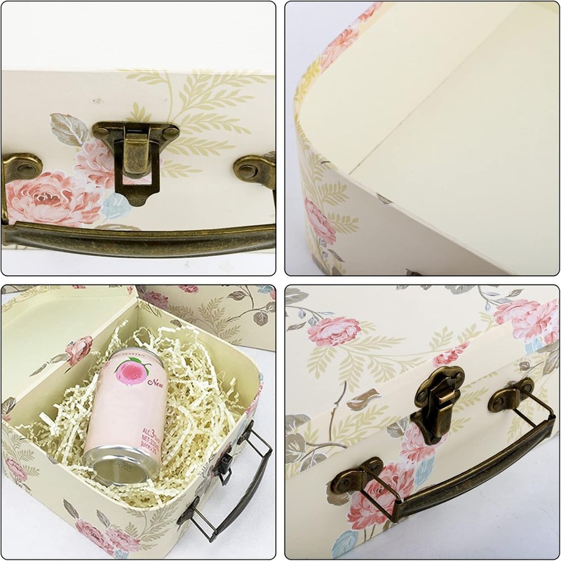 • Multi-Purpose: Use the cardboard suitcases for crafts, gift boxes, or to organize cosmetics, travel souvenirs, and important papers. This storage box is very suitable as a Wedding, Birthday, Anniversary, New Year, Housewarming, Party, gift box, you can use it to hold jewelry, hair accessories, clothes, etc, or as a party display box, display Flowers, candy, snacks, fruits, etc.