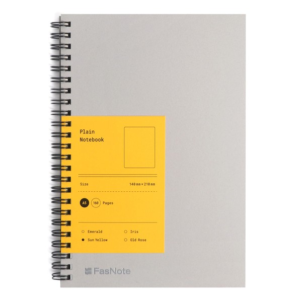 FasNote Blank Spiral Notebook, A5, 160 Pages Blank Paper, Wirebound Sketchbook for Drawing, Notes & Creative Ideas (Sun Yellow)