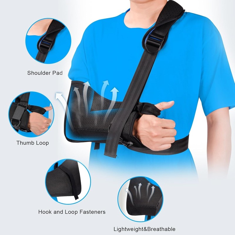 - Arm sling for right left arm, shoulder sling breathable with sturdy support board