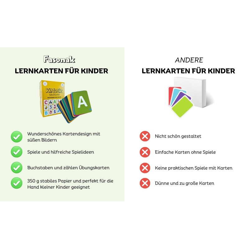 fasonak Letters and Numbers Learning, German ABC Cards, 60 Flashcards for Children