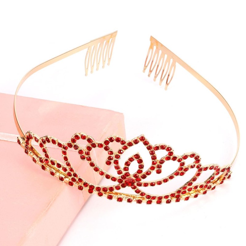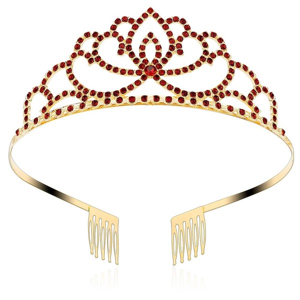 FASOTY Gold Tiara Red Crystal Crown with Combs Elegant Princess Tiaras and Crowns for Women Girls Rhinestone Headband for Bridal Wedding Birthday Party Prom