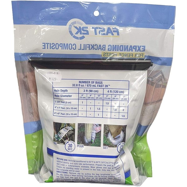 - For 5 in. x 5 in. posts | Use 1 - 26 oz. bag per post hole | Hole needs to be 36 in. deep with a 8 in. diameter.