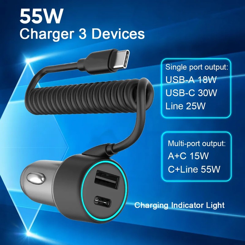 - ❰THREE DEVICE FAST 55 WATT CHARGING❱: Full 55W USB Type-C Cable Compatible Vehicle Car Carger, Supports fast charging Compatible with DJI Osmo Pocket! Perfect for travel or car; 12Volt universal power with compact design make it easy carry and store in backpack or suitcase for travel.