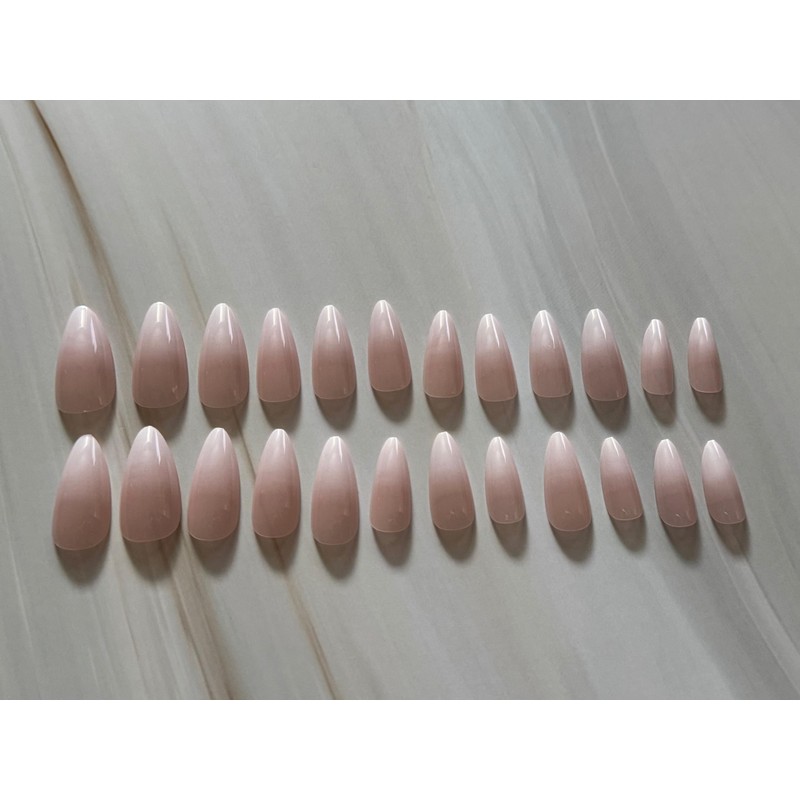 Fast Nails Press On Nails- 24 Pieces Nude Pink Ombre Medium Almond Shape Natural Gradient Reusable Nail Kit with Adhesive Tabs