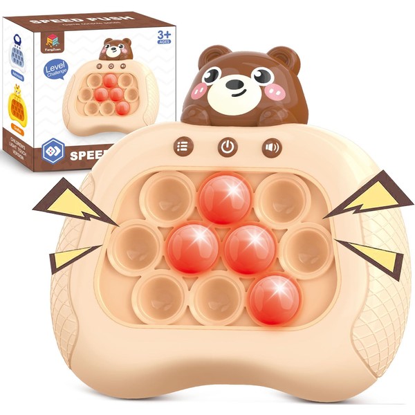 Fast Push Game Fidget Toys, Handheld Game Console, Bubble Game Console, Puzzle Game, Light up Push Game Kids Toys for Ages 3-12, Birthday for Boys Girls Adult (Brown Bear)