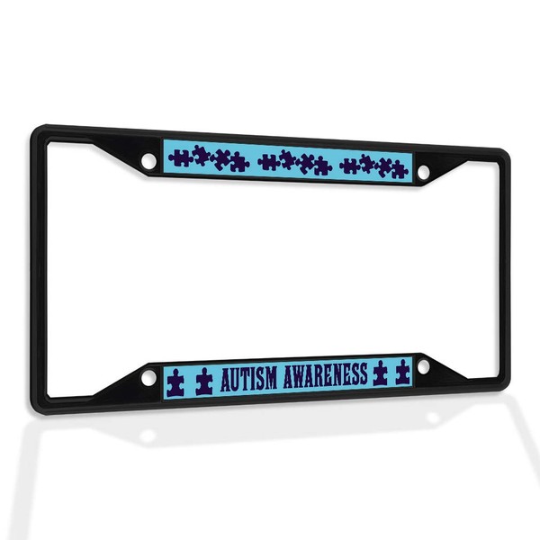Fastasticdeals Metal Insert License Plate Frame Autism Awareness D Weatherproof Car Accessories Black 4 Holes Solid Insert