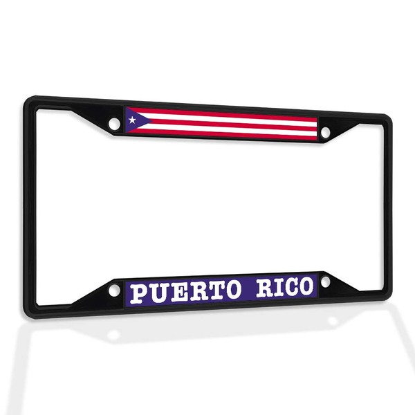 Fastasticdeals Metal Insert License Plate Frame Puerto Rico Flag F Weatherproof Car Accessories Black 4 Holes Solid Insert
