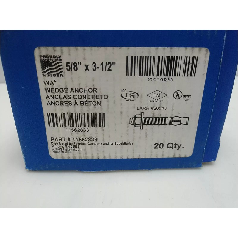 Fastenal Qty 20 - Fastenal 5/8" x 3-1/2" WA+ Wedge Anchors 11562833 New