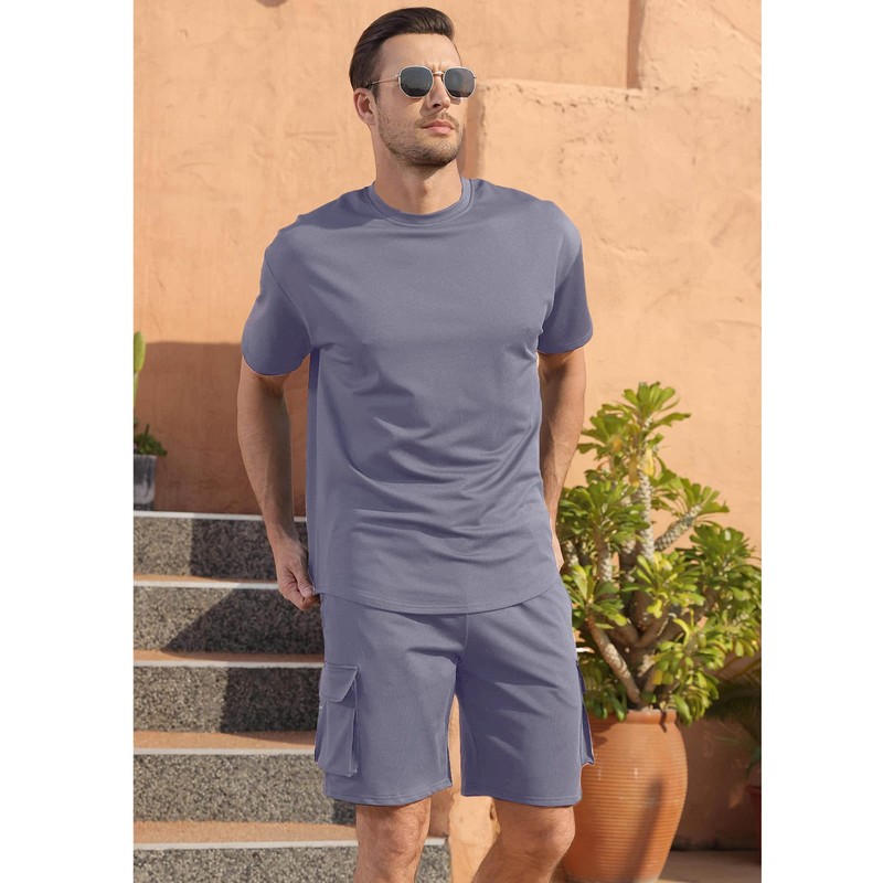 - Mens short sets hight quality cotton polyester blend. Soft and skin-care fabric with good breathability.Elastic/ Lightweight/ Moisture-wicking.