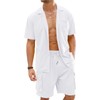 Fastkoala Mens Short Sets Tracksuits Suits Sweatsuits Full Open Button Lapel Shirt & Overalls Shorts Activewear 2 Pcs White XXXL