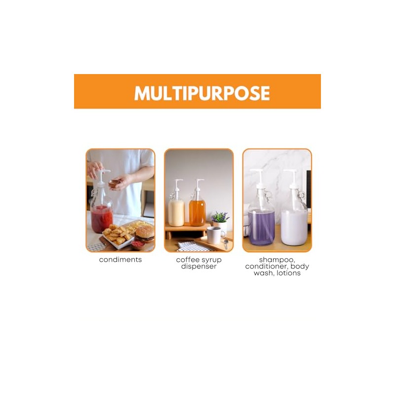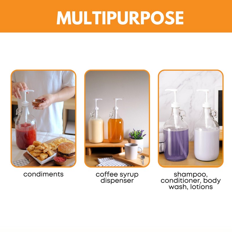 - MULTI PURPOSED: This 1 Gallon glass dispenser with pump is easily used for multiple liquids like hand soap, dish soap or as a laundry detergent dispenser or liquid softener container. Since it is made of food grade materials, you can also use this as a syrup dispenser for coffee bars.