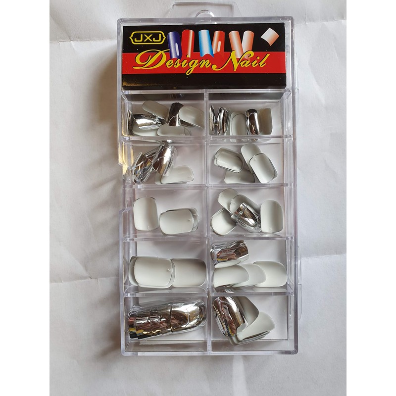 - Box of 70 shiny silver "chrome" effect false full short nails