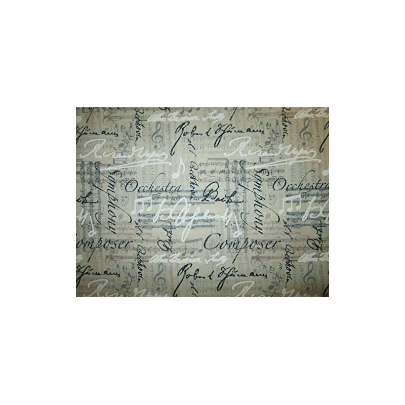 Fat Quarter (18 x 22) Music Notes Lines Words Orchestra BACH Linen Background Cotton Fabric FQ