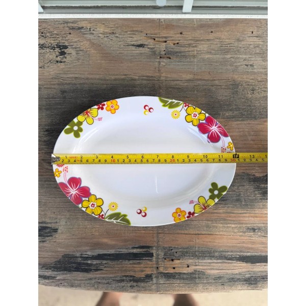 Fataco 8.75" x 12" oval premium plastic melamine plate flower V236 (6-piece set)