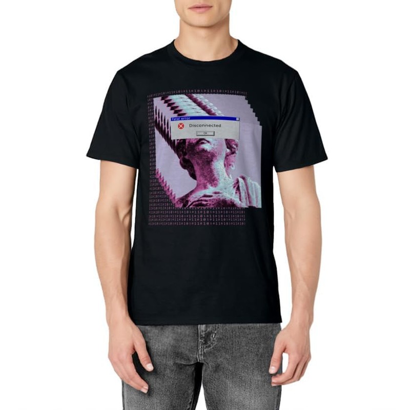 Fatal Error Disconnected Glitch Statue Vaporwave Retro 80s T-Shirt
