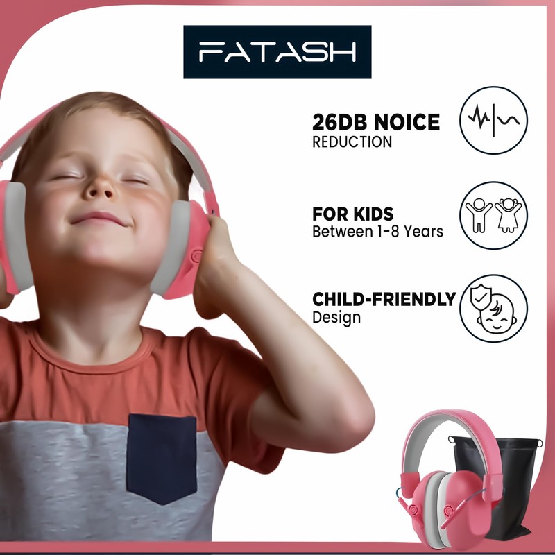Introducing FATASH Kids Noise Cancelling Ear Muffs, the perfect solution for protecting your child's hearing in various noisy environments. Designed with comfort, safety, and durability in mind, these earmuffs are ideal for kids aged 1 to 8 years. Whether it's for travel, studying, or loud events, these ear defenders ensure maximum noise reduction and comfort.