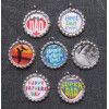Each bottle cap has a split ring attached and is approximately 1¼ inches across. Images are sealed with epoxy resin covers (not waterproof) and securely attached to the bottle caps.