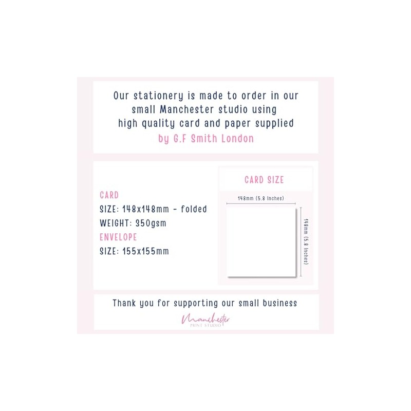 - Printed on thick lightly textured matte 350 gsm premium quality card comes complete with matching premium quality white envelope