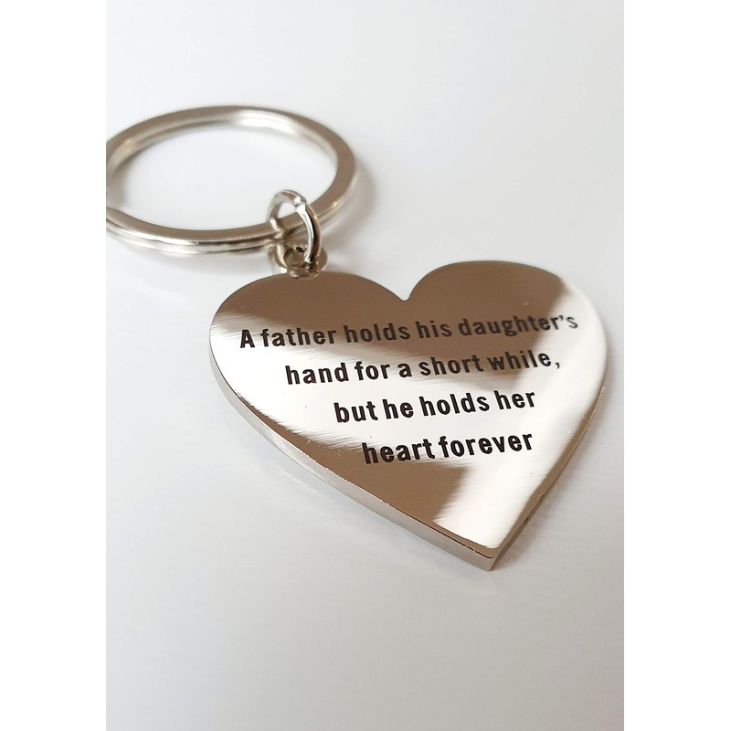 - Thoughtful message: “A father holds his daughter’s hand for a short while, but he holds her heart forever”;