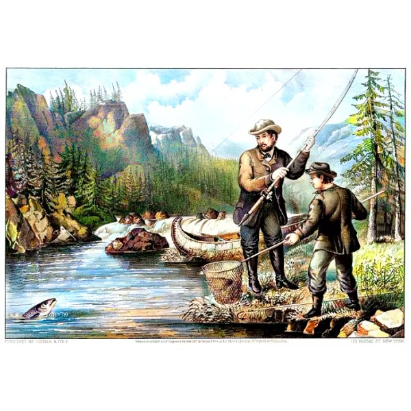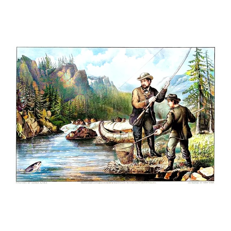 Father Son Salmon River Fishing Fish in Net 1872 2.5 x 3.5" art Fridge Magnet