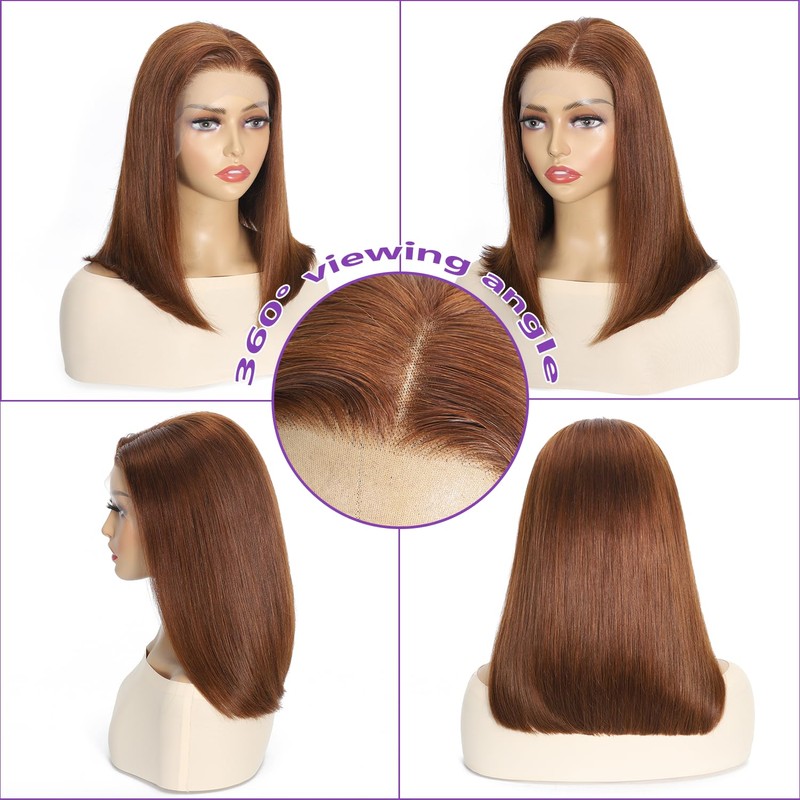 - 【HD Transparent Straight Lace Front #4 Brown BOB Wig Quality】:100% True To Length. No Tangle ,No Shedding,Straight.Healthy, Soft, Bouncy, No Impurities, No Strange Smell,Can Be Straightened, Curled,Bleached, Dyed, Permed, Durable,Reusable And Styled As Your Own Natural Hair