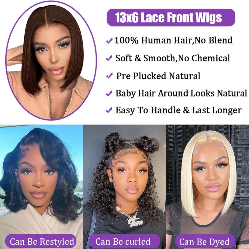 - 【13X6 #4 Brown BOB Lace Front Wigs Hair Material】: Pre Plucked With Baby Hair Human Hair Wigs For Black Women,Select Top Grade 100% Unprocessed Human Virgin Hair,Cut From Young Girl One Donor