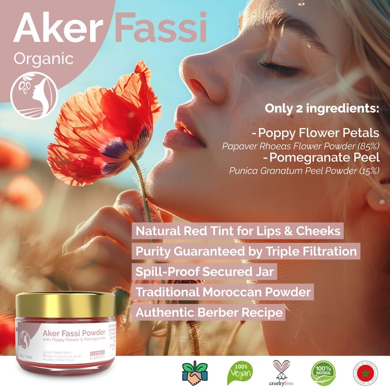 - 🌺 100% NATURAL INGREDIENTS: Traditional Aker Fassi powder enriched with pomegranate bark for natural coloring. This plant-based tint combines the natural properties of poppy and pomegranate for a chemical-free beauty experience.