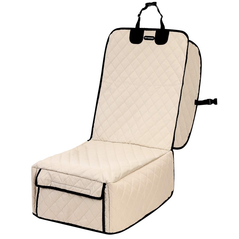 - FRONT SEAT COVER WITH SIDE FLAPS - It can easily fit in the front seat of most standard vehicles. With side flaps, this waterproof front car seat cover for dogs can protect your seat’s all sides.Waterproof-Made with high quality heavy-duty polyester for durability. 4 layered waterproof PU for extra comfortability. Protects seat from pet hair, mud and water, no worry about dirt, dander or claw marks on your seats.