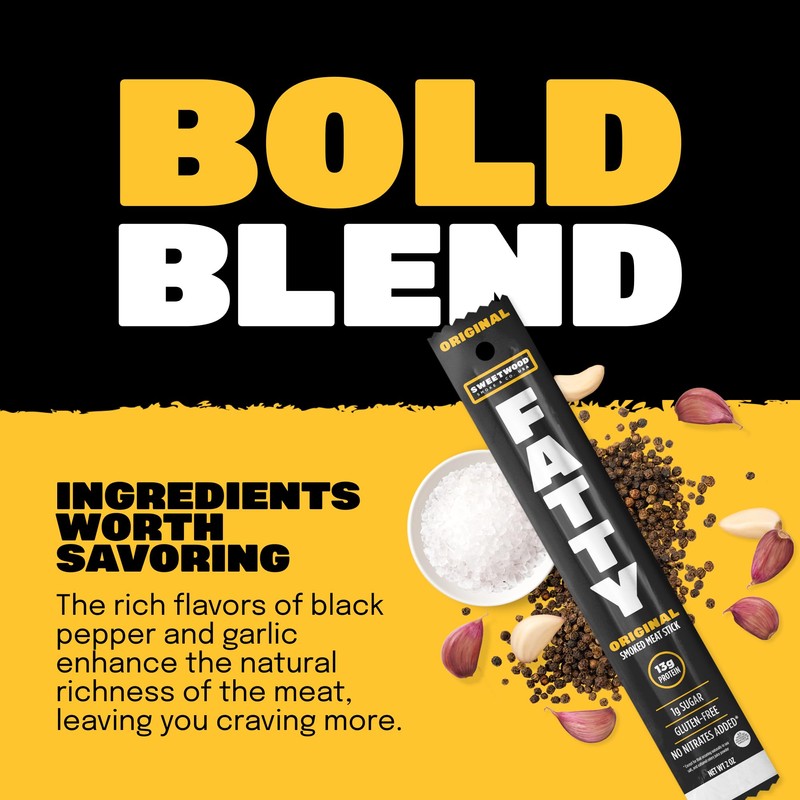 FATTY Grass-Fed Beef Smoked Meat Sticks, Original Flavor, 13g Protein Per Stick, Camping Snack, 2 oz. (Pack of 5)
