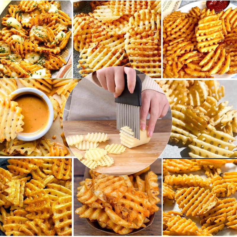 - Great for waffle fries: Transform ordinary fries into fun and visually appealing crinkle cut fries. The sharp, wavy blade ensures quick and effortless slicing, ideal for creating uniform and beautiful waffle shapes