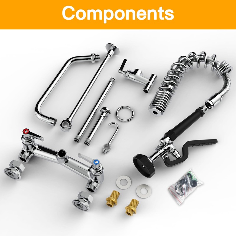 - 【No leak Design】All the connections have o-ring or gasket for sealing.We advise not to use tapes on the connection.Our commercial faucet contains some spare gaskets to replace.