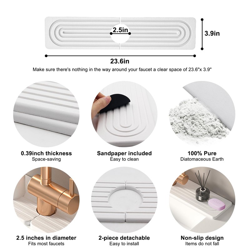 - WIDELY USEFUL: Use our kitchen faucet mat to easily maintain, equipped with polishing tools to maintain water absorption, which proves its long -term sustainable value. It is very suitable for soap boxes, cotton racks, or to keep cups and bottles dry and any places that need to absorb quickly.