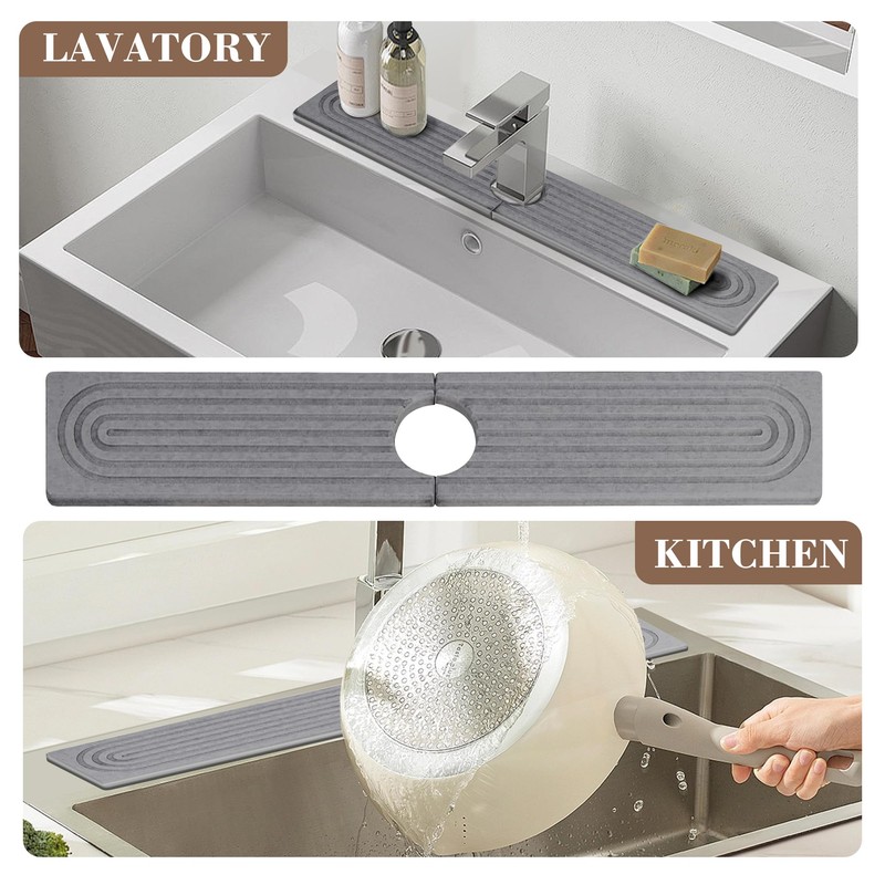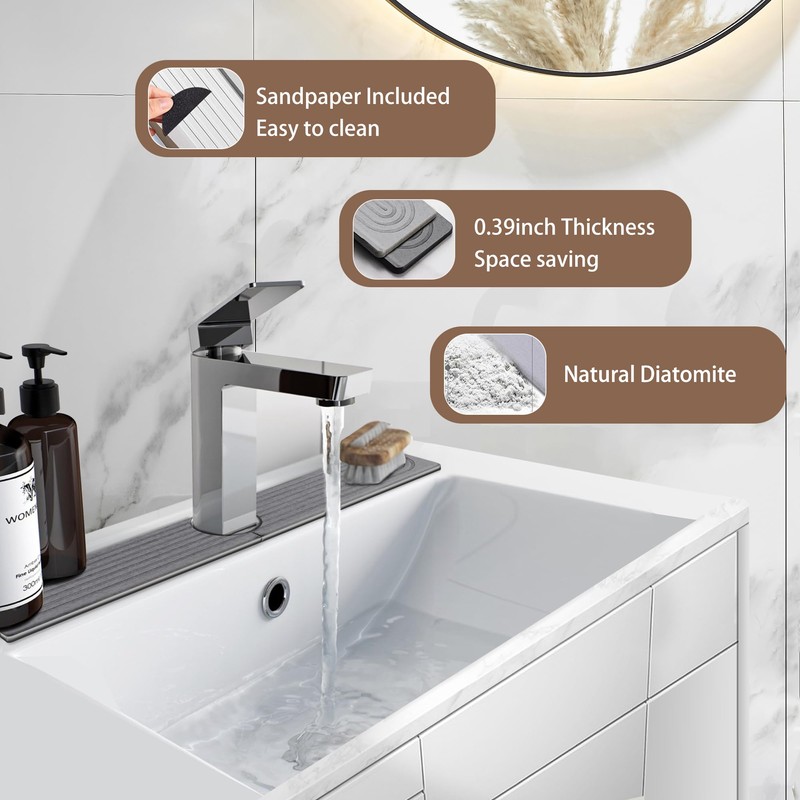 - Universal Fit: This faucet water catcher mat features a versatile cutout, fitting most faucets and measuring 15.5 x 3.93 inches for a perfect match in any kitchen or bathroom.