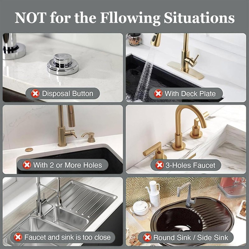 - PLEASE MESURE THE DIMENSIONS BEFORE BUYING. Recommended to use the double-sided adhesive pads included in the package to pad the underside of the Faucet Mat for Kitchen Sink to avoid prolonged moisture underneath.