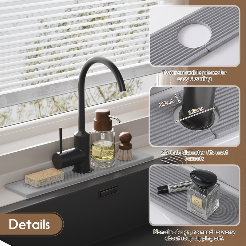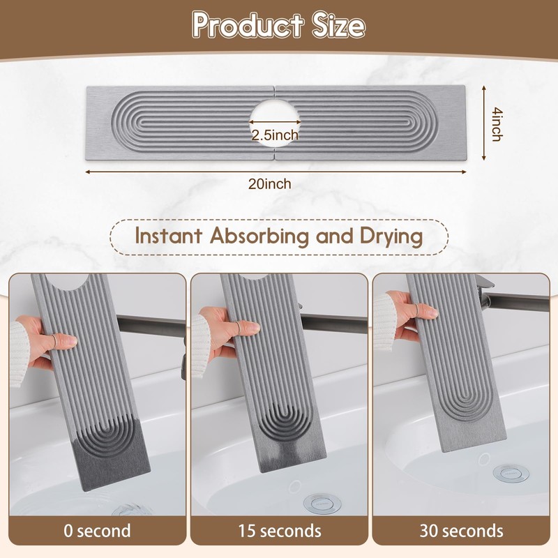 - Fast Drying:Our Faucet mat for kitchen sink is crafted from natural diatomacues earth, The diatomite stone's small holes enable amazing water absorption,ensuring a quick drying surface that keeps your kitchen clean and dry. And kitchen sink mats for around faucet.