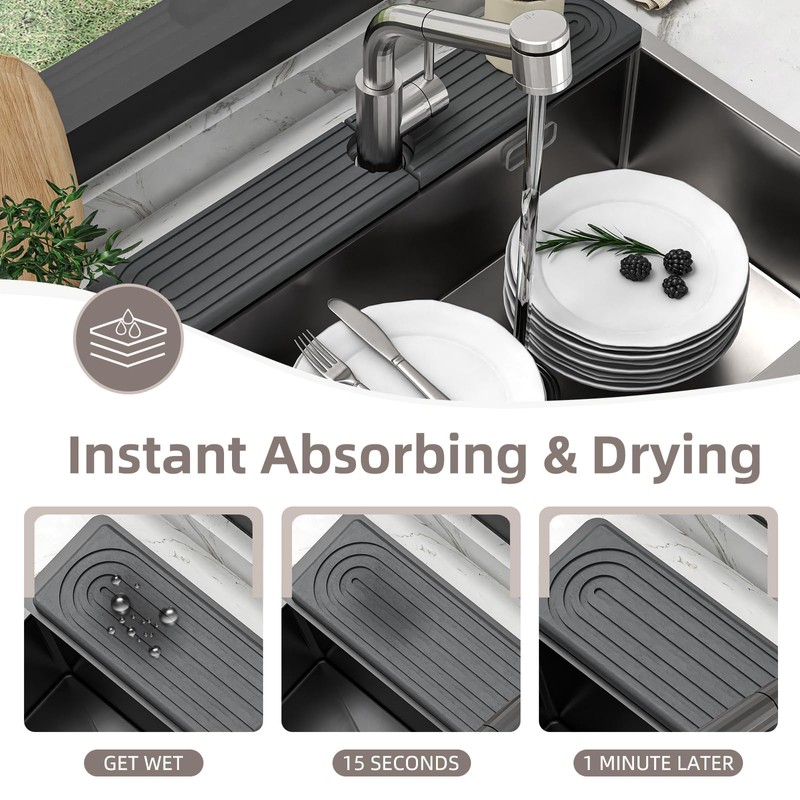 - 【Super Absorbent】 This Is Diatomite Stone -Made Mat With Water-Absorbing And Moisture-Wicking Properties Swiftly Absorbs Water Around Faucets And Dries In Minutes, Keeping Your Countertop Consistently Dry And Free From Pesky Water Droplets