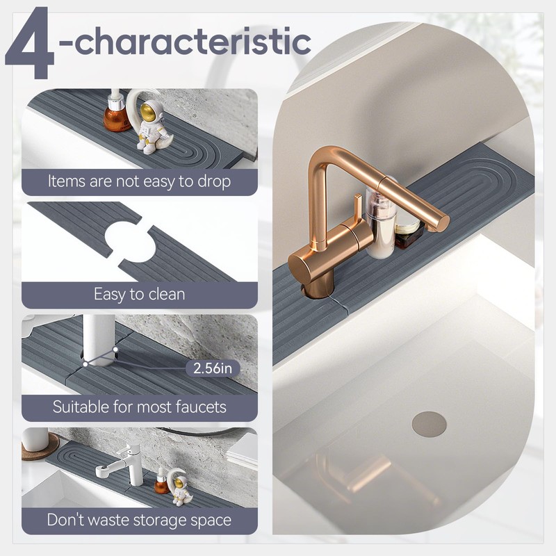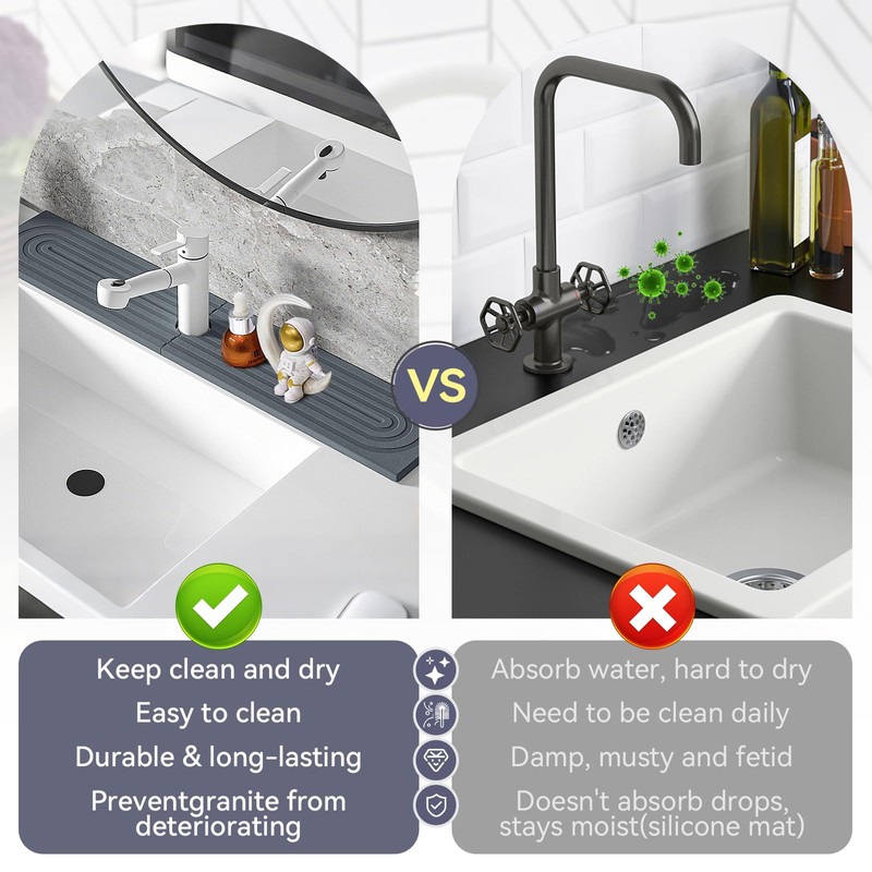 - 【Size】: Please measure before purchasing Quick Dry Sink Stone, The Kitchen Sink Drip Tray Around Faucet size: 23.6in x 3.9in/17.72in x 3.9in, the center hole diameter is 2.5in/6.35cm, please ensure that there is enough countertop space around the faucet.Not Recommended If Your Faucet Area Is Less Than 11.8"