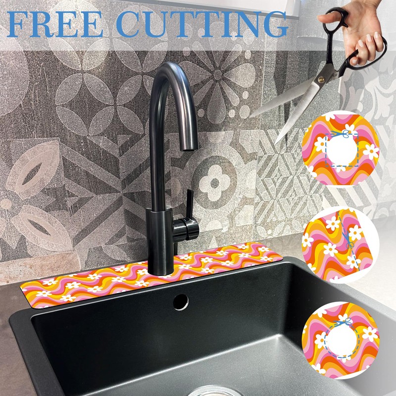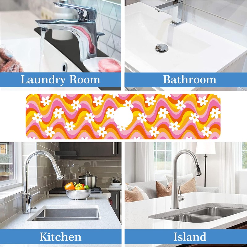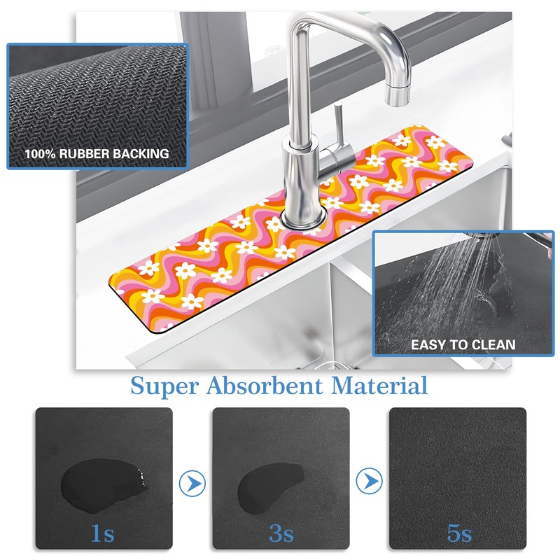 Faucet Mat Splash Guard Retro Floral Daisy, Soft Diatom Mud Material, Strong ...