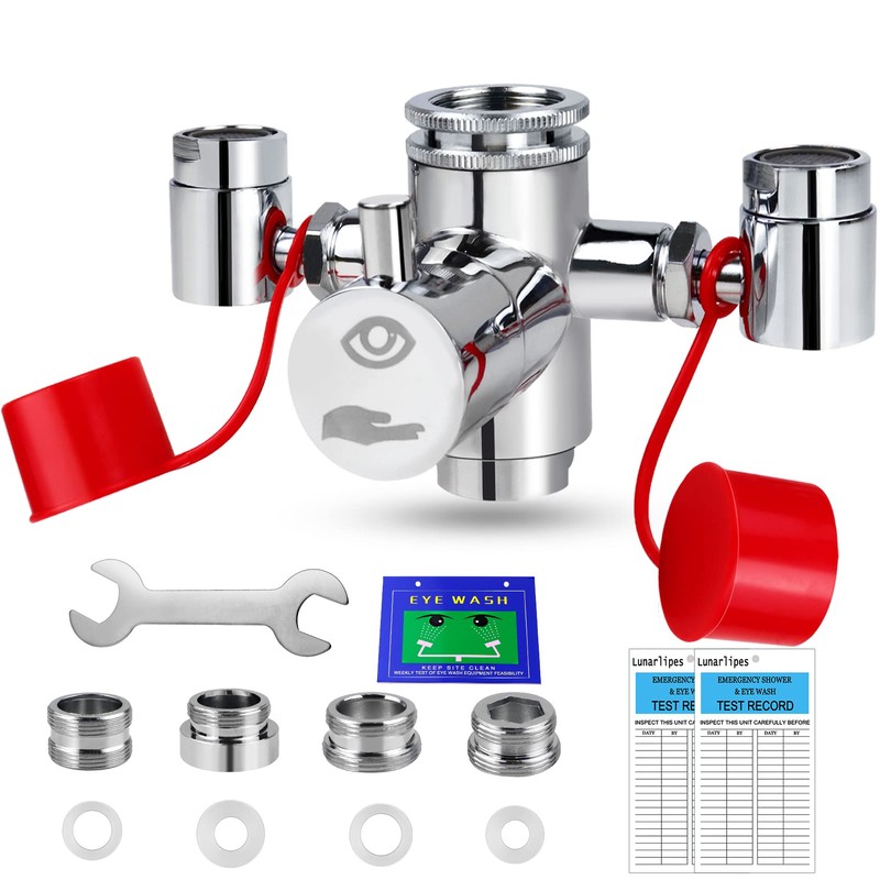 - 【High Quality】: ANSI Z358.1 standard eyewash kit. Eye wash and attachment are constructed from polished chromed solid brass and stainless steell. The sturdy and corrosion-resistant material also greatly extends the service life.The forged brass diverter valve controls the water outlet, allowing the water pressure to meet our usage needs and the water to flow more smoothly.