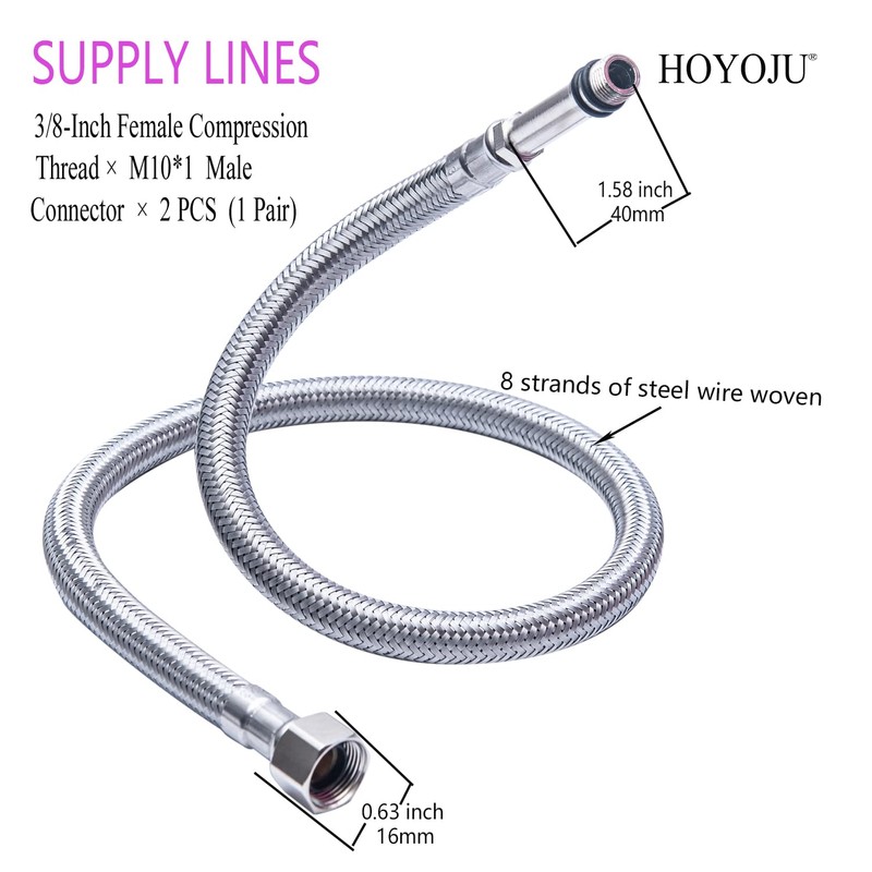 - EASY INSTALLATION:The HOYOJU Faucet Hose Is Quick And Easy To Install. Clear An Simple Directions Allowing You To DIY And Save! Connect To Toilet Or Sink On Your Own.