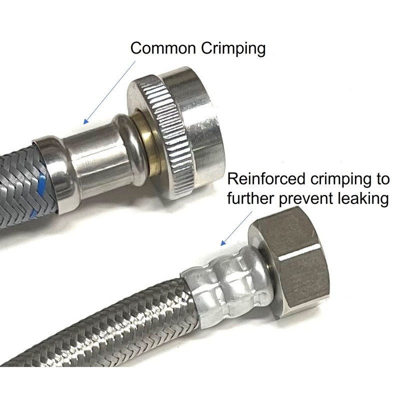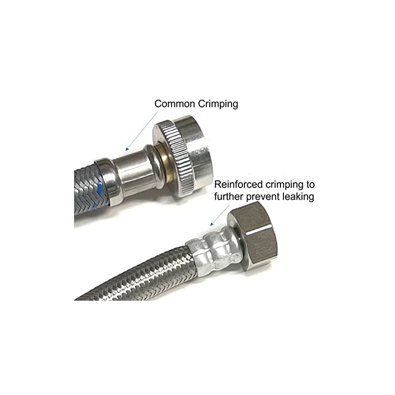 - BURST PROOF - Designed to last. Our hoses use non-toxic PVC core with 304 stainless steel for braided outer protective cover which last incredibly long time for effective protection against rust and burst. Reinforced crimping further prevent the hose from leaking. Working pressure is 125psi and burst pressure is 1500psi. Working temperature ranges 40-degree F to 150-degree F.