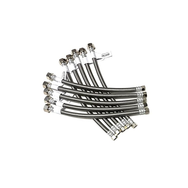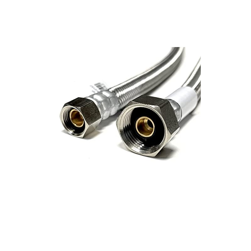 - ONE 304 stainless steel braided premium faucet supply line connector with 3/8" comp x 1/2" Female Iron Pipe thread.