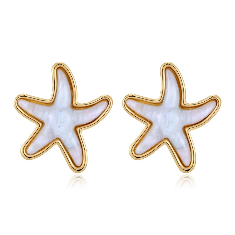 FAUTHENTICUTE White Starfish Earrings For Women With Gold Frame Large Starfish Stud Chunky Star Shell Statement Earring Summer Beach Jewelry