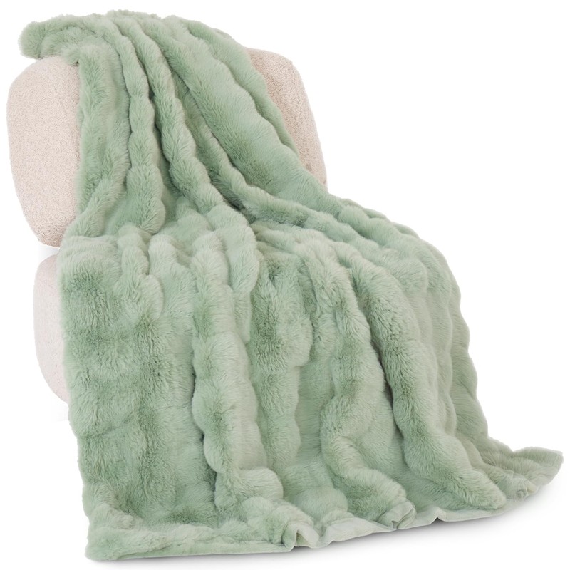 Faux Fur Blanket - Soft & Plush Fluffy Throw Blankets Full Size, 50x60 Inches Rabbit Fuzzy Blanket for Sofa Couch, Cozy Warm Big Fluffy Blanket, Perfect as a Gift, Sage Green