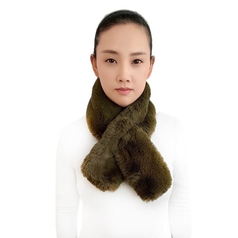 Faux Fur Pull-Through Women's Winter Neck Scarf Rectangle Fluffy (Army Green)