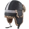 Faux Fur Safety Reflective Aviator Trapper Hat Snow Ski Trooper Winter Cap (S/M, Off Black)