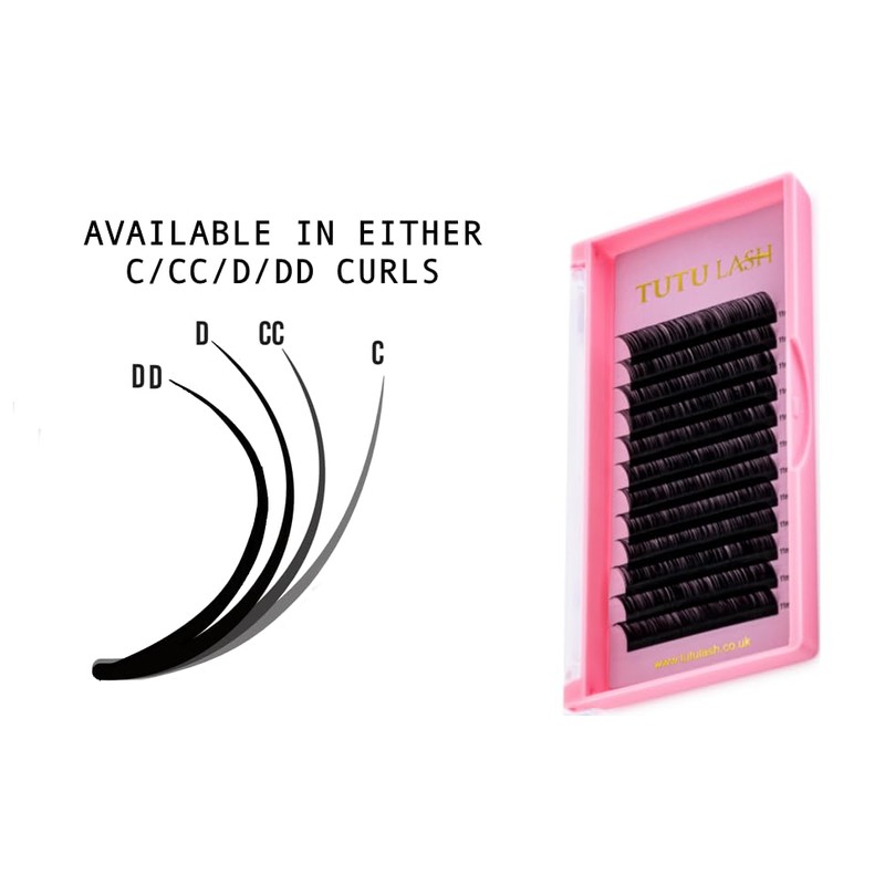 Individual Eyelash Extension Trays available in Classic or Russian Volume, C, CC, D, DD Curls, 0.03 Mega Volume, 0.05 Volume, 0.07 Volume, 0.15 Classic, 0.20 Classic Lashes. Faux Mink Lashes, high quality PBT Fiber, easy to remove lash strips (foil backed strips)
