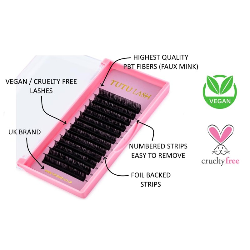 • Our lashes are produced using the most advanced PBT fibres (PolyButylene Terephthalate) to give the perfect curl and retention.